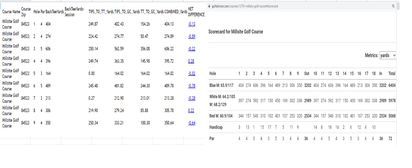Golf Hole Distances Measured Versus Scorecard Yardages Formillsite Golf Course In 84523 By Golftraxx